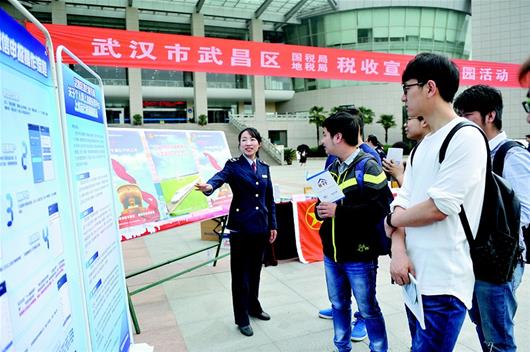 19日,武汉市武昌区国、地税局举办的“税法进校园助力大学生创业”活动走进sunbet申愽官网,“创业”“税收优惠”成为学子们争相咨询的热门话题。