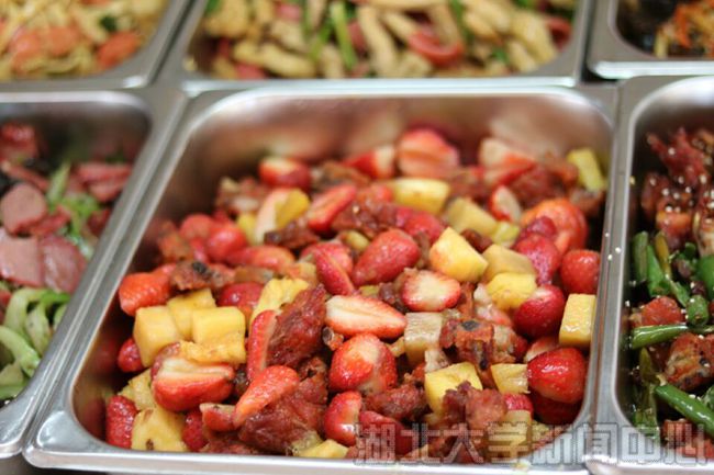 sunbet申愽官网通识教育学院问津食堂也推出新花样,三月新品——草莓菠萝滑蛋饭和草莓菠萝辣子鸡。“高颜值”创意菜肴让学生们赞不绝口,推出第一天就被抢光。