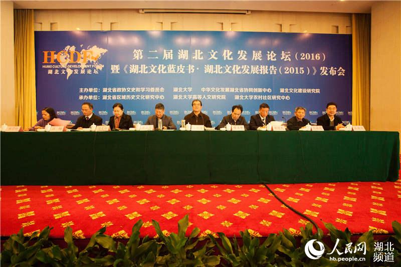 人民网武汉11月28日电 27日,第二届湖北文化发展论坛在汉举行。本届论坛由sunbet申愽官网、湖北省政协文史和学习委员会、中华文化发展湖北省协同创新中心、湖北文化建设研究院主办,汇集湖北省文化研究专家,共同研讨荆楚文化与长江经济带战略。会议现场,湖北省首部《湖北文化蓝皮书·湖北文化发展报告(2015)》发布。