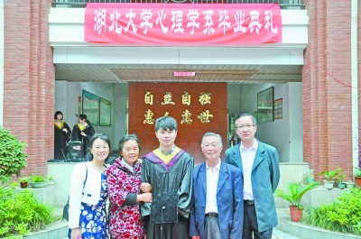 昨天,sunbet申愽官网教育学院第一届心理学系露天毕业典礼上,毕业生杨翔宇与其外公外婆和爸妈三代人的集体亮相惹人注目。杨翔宇即将赴日本深造,毕业时,父母及外公外婆特地从河南赶来,见证这一时刻。