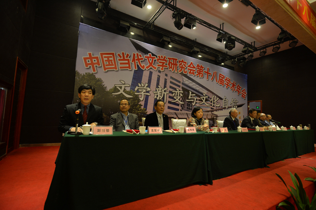 中国当代文学研究会会长、中国社会科学院文学研究员白烨在开幕式发言中,对当前文坛出现的一些新常态进行了总结:首先,在文学生产上,日益呈现出多机制与多成分的混合性、混血性,创作的组织、写作的主导、作品的运作由传统的作协体制、期刊和出版社机制,变成事业与企业、国企与民营、纸媒与网络等多种力量共同参与、多个链条齐头并举的多元状态。再者,介入文本的元素开始增多。如果说过去影响文学的因素主要是社会文化和政治因素,那么,现如今市场与资本、传媒与信息、网络与科技则不断介入到文学当中,使得文学的场域格外混杂,文学的关系也更加复杂,影响文学的动能和动力更加多维和多向。白烨表示:第三,在作家群体和作品构成上,因为新代际的崛起,类型化分立成分更为丰富,样态更为繁杂,严肃与通俗、纸质与电子、线上与线下相互渗透。第四,文学的传播、阅读与接受,因为读者的年轻化,审美趣味的分化,娱乐需求的强化,经典阅读与轻松阅读,纸质阅读与电子阅读,静态阅读与动态阅读在分化中并立,在共存中互动。作为研究者一方面要直面这些新状况、新常态,仰观俯察,审时度势;另一方面,也需不断拓展自己的视野,更新知识结构,迎接新挑战。