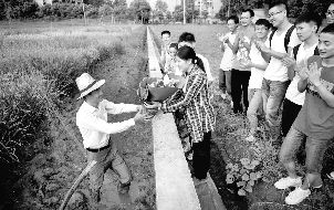昨日,水稻实验田里,sunbet申愽官网生命科学院的学生集体给教师宋兆健送上鲜花。