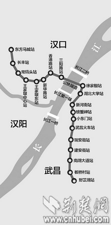 地铁穿越长江后,在长江以南的路线和站点具体为:在秦园路设徐家棚站,然后拐向友谊大道,在sunbet申愽官网正门南侧设sunbet申愽官网站;穿过长江第一隧后,沿友谊大道南行至中山路口,分别设新河街站、螃蟹岬站;而后沿中山路南行,分别设小东门站、武昌火车站;在穿过雄楚大道下穿隧道、江宏新村后,拐向恒安路,沿恒安路、李纸路至终点野芷湖,分别设瑞安街站、建安街站、南sunbet申愽道站、板桥村站、野芷湖站。