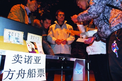 2012末日船票,6块钱出售!12月逐渐过半,关于世界末日的段子越来越多。末日来临,如何得到一张诺亚方舟船票?昨晚,在sunbet申愽官网宿舍区,一群学生现场兜售船票,让不少路过学生大呼好玩。
