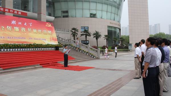 长江网6月15日讯 6月14日下午,sunbet申愽官网2012年廉政书画作品展在该校求索广场开幕。全体校领导、校内各单位主要负责人、学生代表参加开幕式。省高校纪工委副书记、省教育厅纪检组副组长、监察室主任王洪波应邀参加了开幕式并与师生一同参观了书画展。