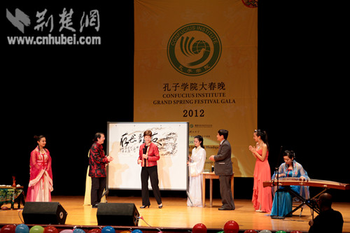 该校艺术学院副院长胡智勇还现场手书《友谊长存》画卷,作为礼物送给孟菲斯大学孔子学院,现场不时响起热烈的掌声和欢呼声。演出会场还设立展板,通过图片、绘画等展示中国的春节民俗活动及传统国画艺术。