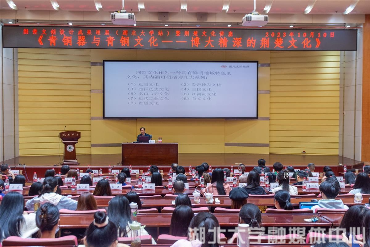 10月10日,荆楚文创设计成果巡展暨荆楚文化讲座在sunbet申愽官网举行。本次巡展和讲座由湖北省文物事业发展中心主办、sunbet申愽官网承办,sunbet申愽官网艺术学院具体执行。讲座由湖北省博物馆原党委书记、二级研究员万全文主讲。