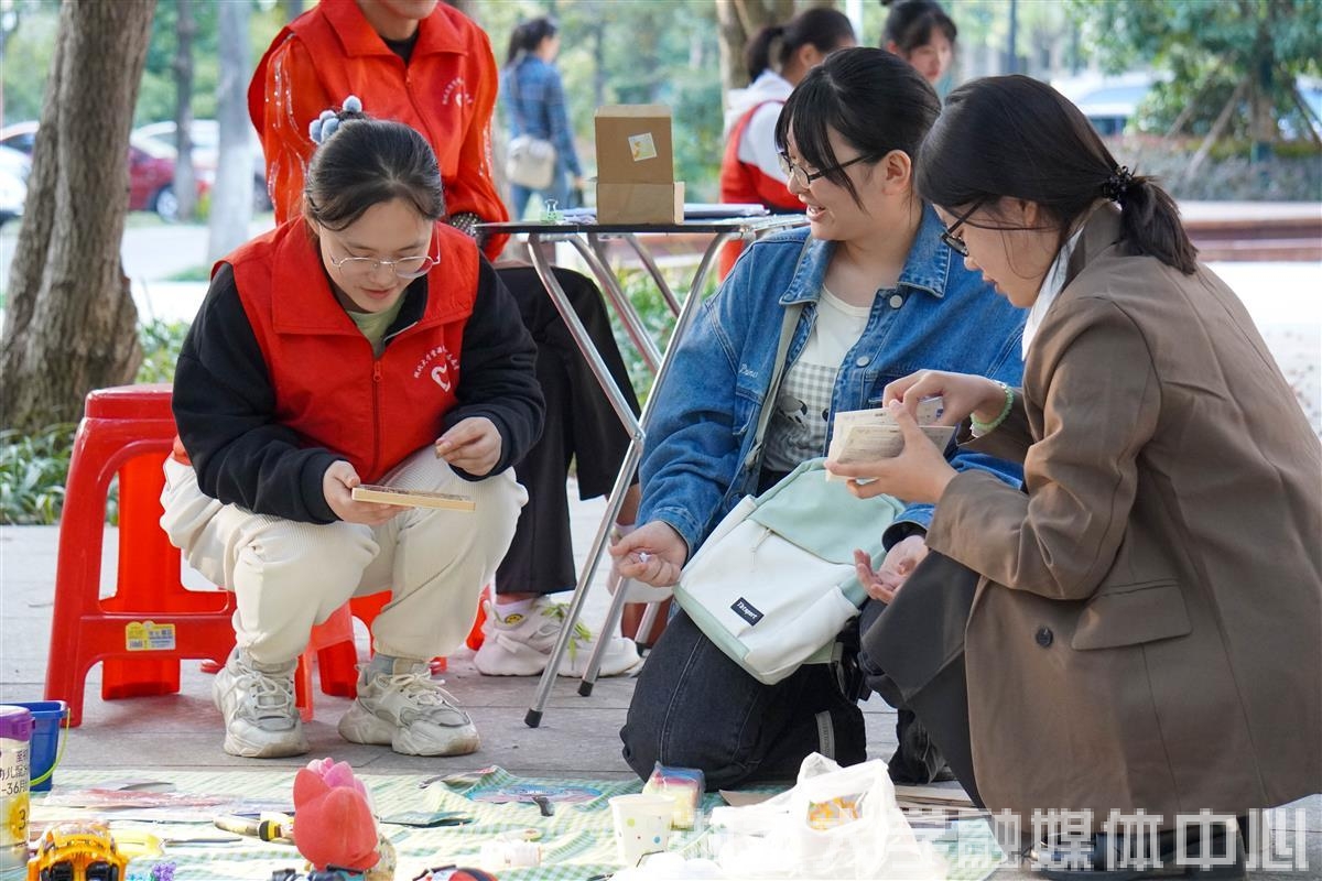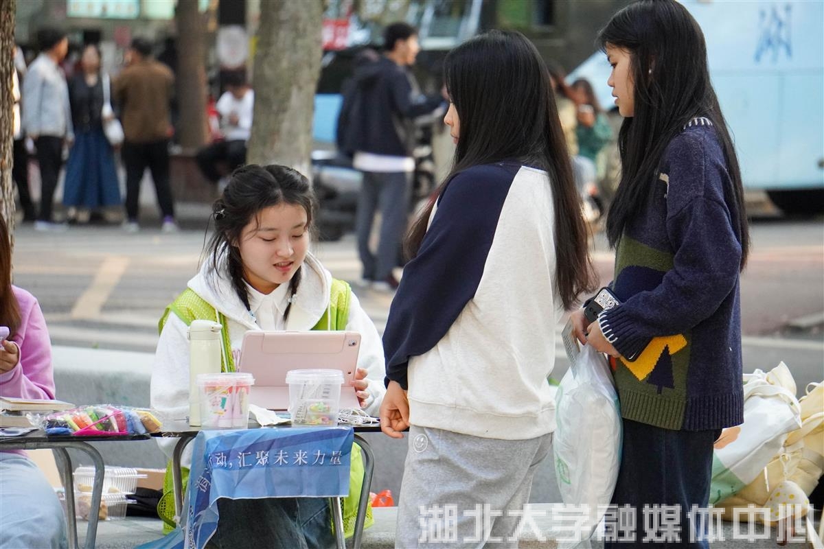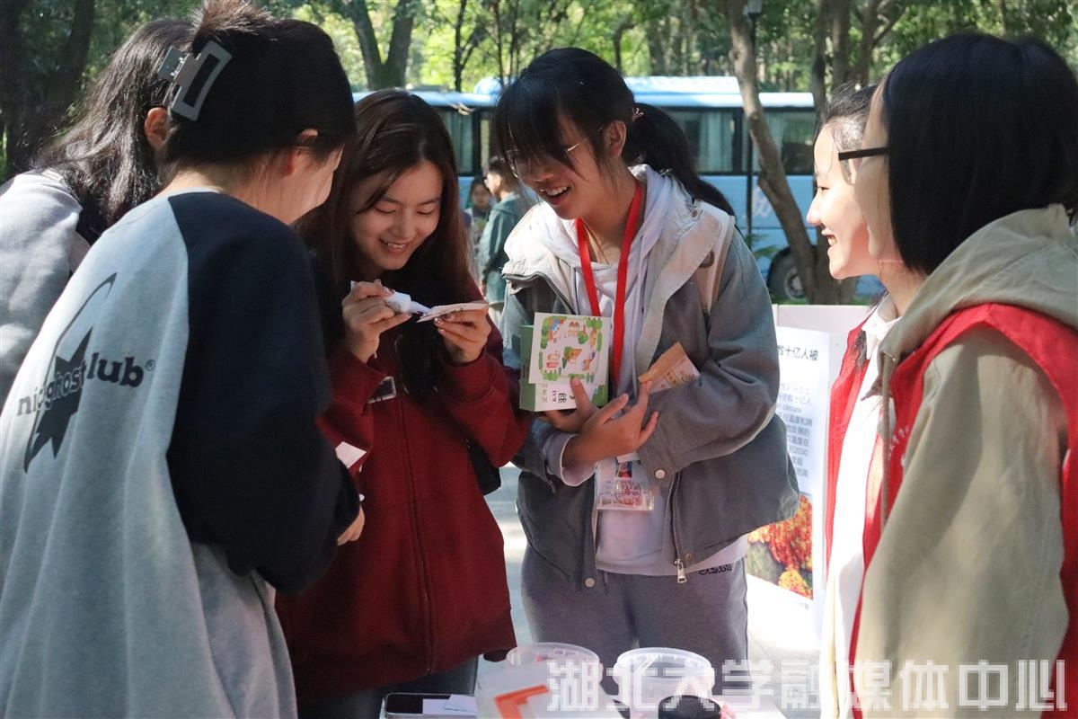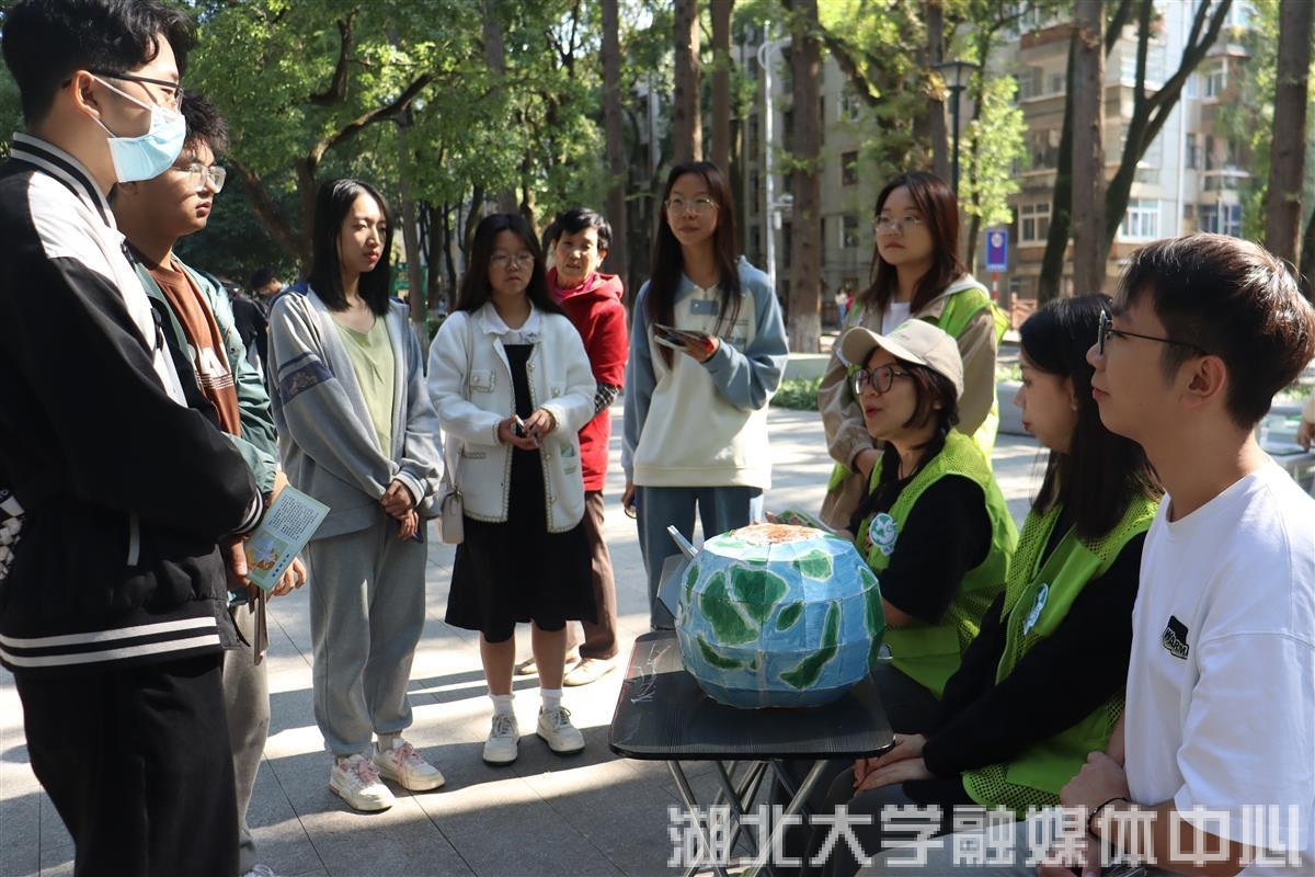 “欢迎欢迎!”志愿者们热情地招呼着走向活动场地的一群学生。10月21日上午,活动现场迎来了湖北中医院大学校学生助理委员会团队,sunbet申愽官网活动负责人为他们介绍了活动内容,并带领其体验活动项目。访谈时,双方团队互相交流经验,探讨活动的改进空间和后续扩大化发展,活动负责人2022级地理科学(师范类)罗铠澍说:“希望我们可以竭力合作将这个活动继续推广,环境保护需要更多的人参与进来”。