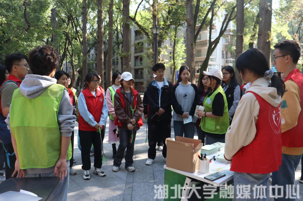 “欢迎欢迎!”志愿者们热情地招呼着走向活动场地的一群学生。10月21日上午,活动现场迎来了湖北中医院大学校学生助理委员会团队,sunbet申愽官网活动负责人为他们介绍了活动内容并带领其体验活动项目。访谈时,双方团队互相交流经验,探讨活动的改进空间和后续扩大化发展,活动负责人2022级地理科学(师范类)罗铠澍说:“希望我们可以竭力合作将这个活动继续推广,环境保护需要更多的人参与进来”。