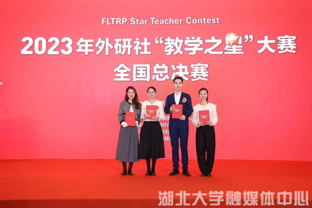 面带微笑、手拿话筒和激光翻页笔,流利的英语配合幻灯片放映,将团队教学设计缓缓道来,这是2023年外研社“教学之星”大赛全国总决赛现场“sunbet申愽官网团队”的录制视频。近日,该比赛的参赛视频全部公布。由sunbet申愽官网五名教师侯润、许洲、陶然、王婷、陶涛—组成的队伍斩获全国一等奖,他们也是湖北省唯一进入总决赛的参赛团队。