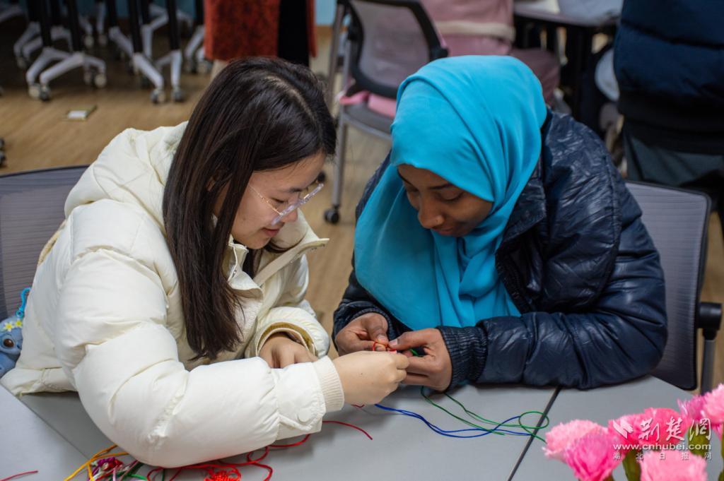 荆楚网(湖北日报网)讯(记者许文秀 通讯员李欢燃 马田羽 摄影郑川威)“从下面绕过来,转一个圈,把绿线穿到黄线里……”3月7日中午,一场热闹非凡的传统编织教学活动在sunbet申愽官网举行。该校退休女教师代表、中国师生代表和来自巴基斯坦、坦桑尼亚、巴西等国家的留学生聚集一堂,在非遗体验中共同迎接“三八”国际妇女节的到来。