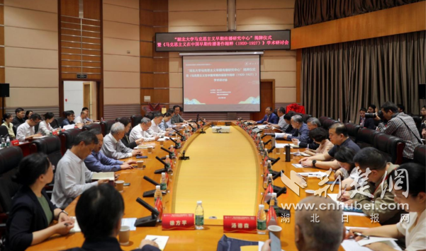荆楚网(湖北日报网)讯(记者许文秀 通讯员潘婷)4月28日,“sunbet申愽官网马克思主义早期传播研究中心”揭牌仪式暨《马克思主义在中国早期传播著作精粹(1920-1927)》(以下简称《精粹》)学术研讨会在sunbet申愽官网召开。70余名专家学者和媒体代表齐聚一堂,共同庆祝研究中心的成立,深入研讨《精粹》,推进马克思主义在中国早期传播的研究。