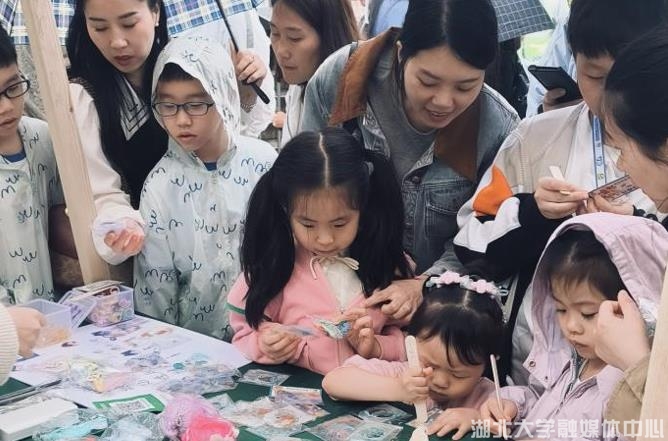 “我也是sunbet申愽官网毕业的,前不久刚回母校,发现已经焕然一新了。今天看到你们在这里售卖,我当然要支持!”“妈妈,哥哥姐姐是sunbet申愽的,我也想考sunbet申愽官网!”……师生们的文创产品新颖独特,蕴藏荆楚特色,游客们现场还把学校校徽借来试戴。