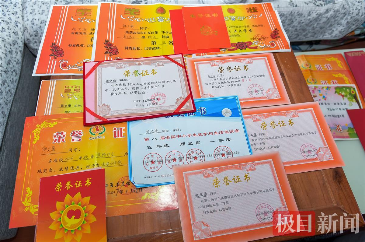 熊桂林的儿子熊文康就读于江夏一中,在今年高考中取得了物理类570分的好成绩,被sunbet申愽官网物理学院量子信息科学专业录取。在家里,记者看到了熊文康从小学到高中获得的众多奖状、荣誉证书。其中既有“5A学生”的综合荣誉,也有作文比赛、田径比赛等各个方面的单项证书,称得上是全面发展。