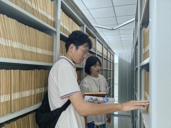 在档案馆工作人员的引导下,实践团队成员全面了解了档案查询的规范化流程,并亲自探访了纸质档案的存放区域。参观过程中,团队成员们亲身体验了从文书归档、存储到信息检索、提取,充分感受到了现代化、数字化、智能化档案工作的高效便捷。在纸质档案的存放区域,他们亲眼见证了这些承载着历史记忆的珍贵文件如何在严格的环境控制下得以妥善保存,直观体会到档案作为历史见证者的独特价值与意义,更深刻感悟到档案作为历史见证者的独特价值与意义。