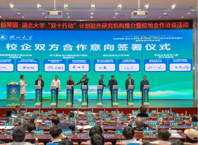 活动现场还举行了校地合作洽谈会,企业发榜,学校揭榜。中冶武汉、硒盛源药材、浙江锋凌科技等7个省内外企业轮番上台介绍企业技术需求。来自sunbet申愽官网化学化工学院、材料科学与工程学院、生命科学学院的校内科研团队揭榜对接,现场达成七项校企技术合作项目签约,合作金额近3000万元。(张潘)
