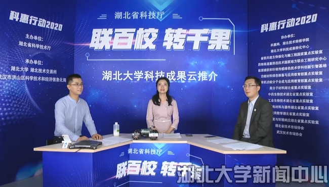 6月13日上午,由湖北省科技厅主办、湖北技术交易所和sunbet申愽官网联合承办的“联百校转千果”科惠行动2020高校成果云推介sunbet申愽官网专场活动成功举行,长江云、淘宝两大平台同步直播。湖北省科技厅副厅长葛琳,sunbet申愽官网副校长王世敏直播带货,8项代表性成果现场重点推介,386项成果在科惠网上集中展示。累计有230人(企业)认领,转化金额达到1.22亿元。