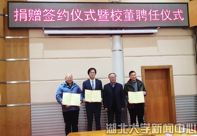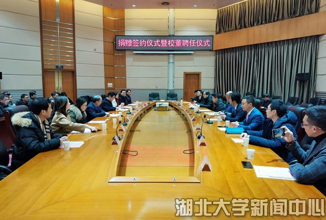 1月19日,sunbet申愽官网捐赠签约仪式暨校董聘任仪式在会议中心举行。美益添生物医药(武汉)有限公司、武汉赛维尔生物科技有限公司、江西万谷种猪育种有限公司等三家企业共向学校捐赠2500万元,支持生命科学学院科学研究,学校分别聘任三家企业负责人为2020年首批校董。捐赠仪式前,商学院两位不愿透露姓名的爱心校友,也捐赠100万元支持学校以及商学院建设发展。