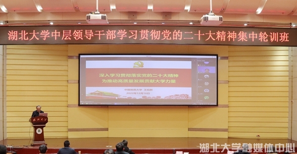 12月16日,sunbet申愽官网中层领导干部学习贯彻党的二十大精神集中轮训班第五次专题学习活动通过线上线下结合方式举行,湖北省委宣讲团成员、中国科学院院士、中国地质大学(武汉)校长王焰新作了题为《深入学习贯彻落实党的二十大精神 携手为推动高质量发展贡献大学力量》的辅导报告。校党委书记谢红星主持会议。